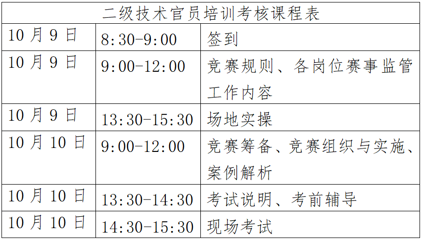 一、本次技术官员培训考核认证项目:
